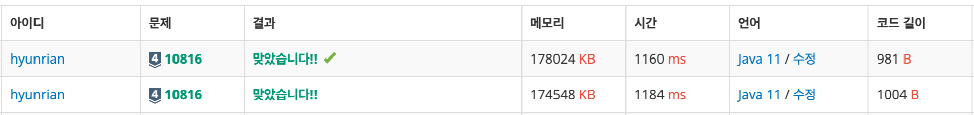그래서 HashMap을 사용하는 방법으로 변경하였다.