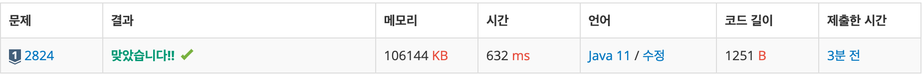 저번에 비슷한 문제에서 재귀함수를 썼을 때 메모리 초과 문제가 있었기 때문에 반복문으로 최대공약수를 구하였다.