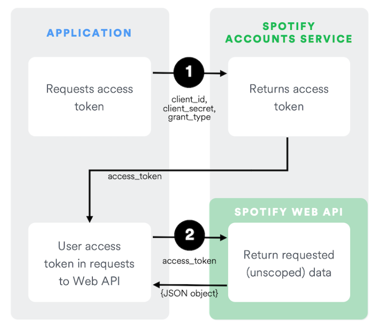 이렇게 하면 이용 가능한 요청에 제한이 있지만 별도의 Spotify 계정이 필요하지 않다.
