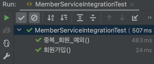 Spring Boot에서 JdbcTemplate을 이용한 DB 접근(H2)을 위해 테스트코드(JUnit) 작성 후 실행했을 때 발생한 에러.