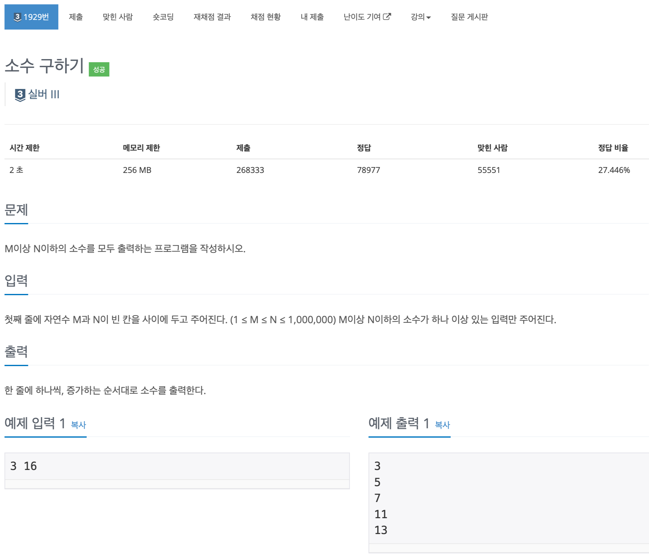 소수 여부를 판별하는 것은 어렵지 않지만, 계속해서 시간초과가 뜨는 바람에 다른 방식을 생각해야 했다.